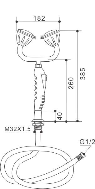 供水软管:长度1.5米,软性PVC管外覆不锈钢网,外层包裹PE管,