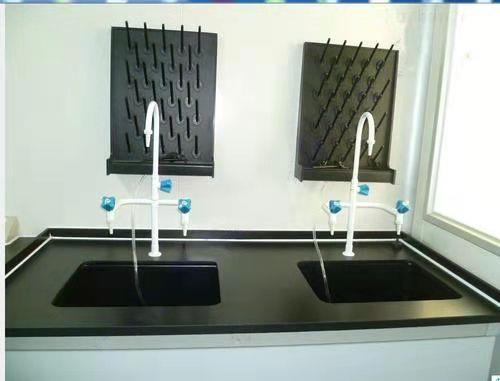 在中央台和边台上,安装试剂架、万向支架,用来放置根据不同实验目的的反应管,抽取管等器具,另外在实验台上要引入特殊气体配管,以及作为冷却用的给排水管,在通风柜内部也可安装固定器具的万向支架。